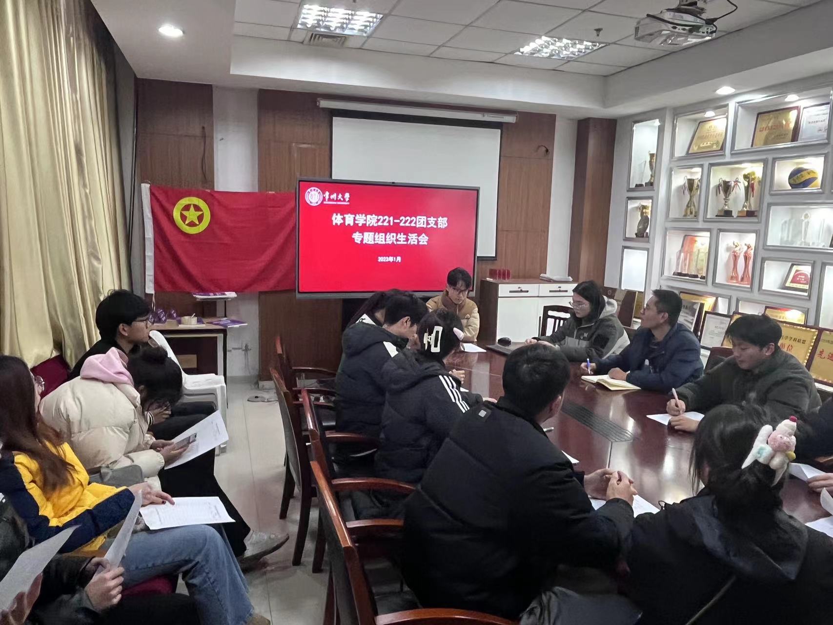 1月6日下午,学院体育221-222团支部作为示范性团支部在东区体育馆152会议室组织开展2023年专题组织生活会。学院团工作负责人吕强列席指导,体育221-222团支部全体团员参加。体育211-212团支部书记房硕主持会议。