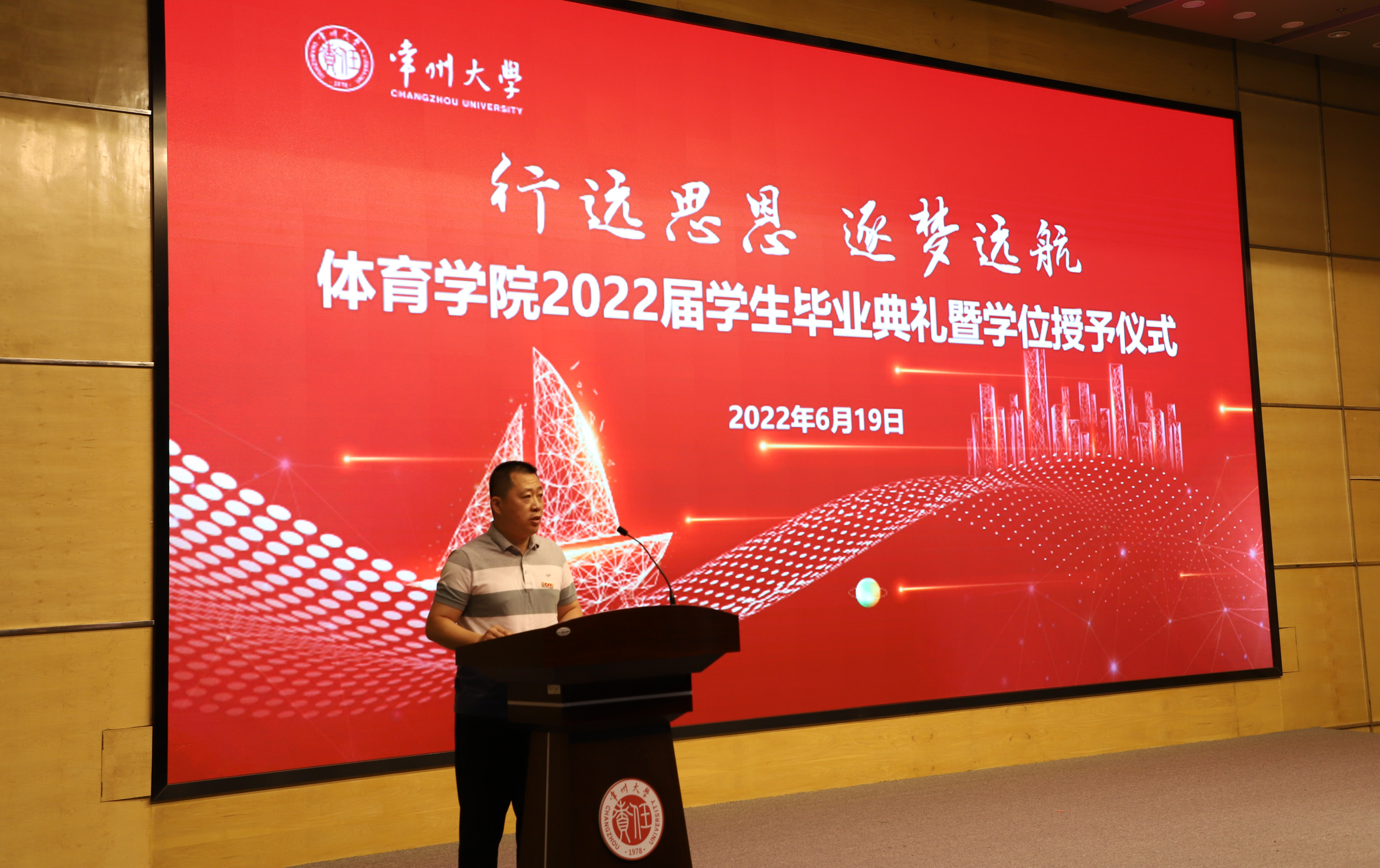 四载芳华,骊歌未央。6月19日上午,MG冰球突破网站2022届学生毕业典礼暨学位授予仪式在科教城校区文彰楼报告厅隆重举行。院领导李荣、徐勤儿、王纪信、桑月标、沈纲及院关工委常务副主任郑伯伟出席典礼,全院教职工、毕业生家长代表、全体在校学生参加典礼。典礼由党总支副书记桑月标主持。 典礼前,毕业生《青春之旅》MV,带领大家回顾毕业生们大学四年的青春时光,勾起了大家美好的回忆。 上午9:30,典礼在庄严肃穆的国歌声中拉开帷幕。院长徐勤儿寄语毕业生。他向2022届毕业生圆满完成学业表示热烈的祝贺,对同学们取得的骄人成绩感到自豪,他希望全体毕业生“勇担责任、筑梦未来”,与新时代同向同行,承担起常大人的历史责任;希望他们“牢记使命、顺应时代”,融入时代发展的潮流,自觉肩负民族复兴的伟大使命,聚力推进体育强国建设的伟大实践;希望他们“砥砺奋斗、矢志不渝”,在推进体育强国、教育强国、健康中国等国家战略与强国目标中砥砺奋进,积极作为。
